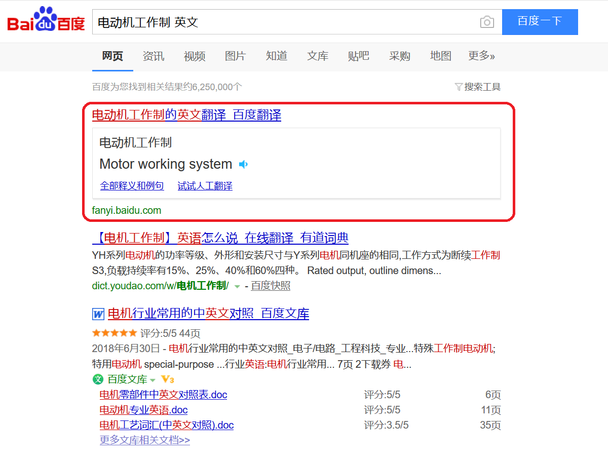 [3] 次に百度で「电动机工作制 英文」を調べてみます